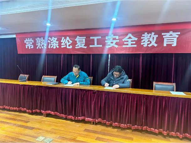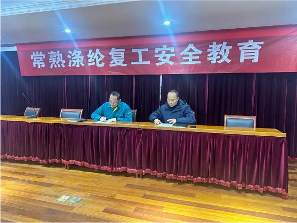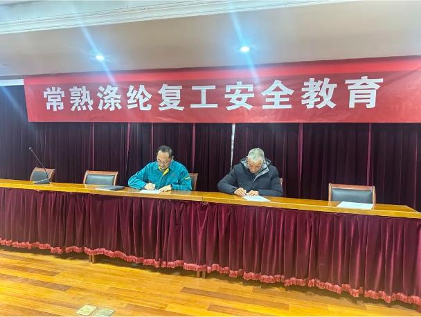 الصورة | استئناف وحدة أعمال البوليستر في تعليم سلامة العمل وتوقيع اجتماع اتفاقية مسؤولية السلامة